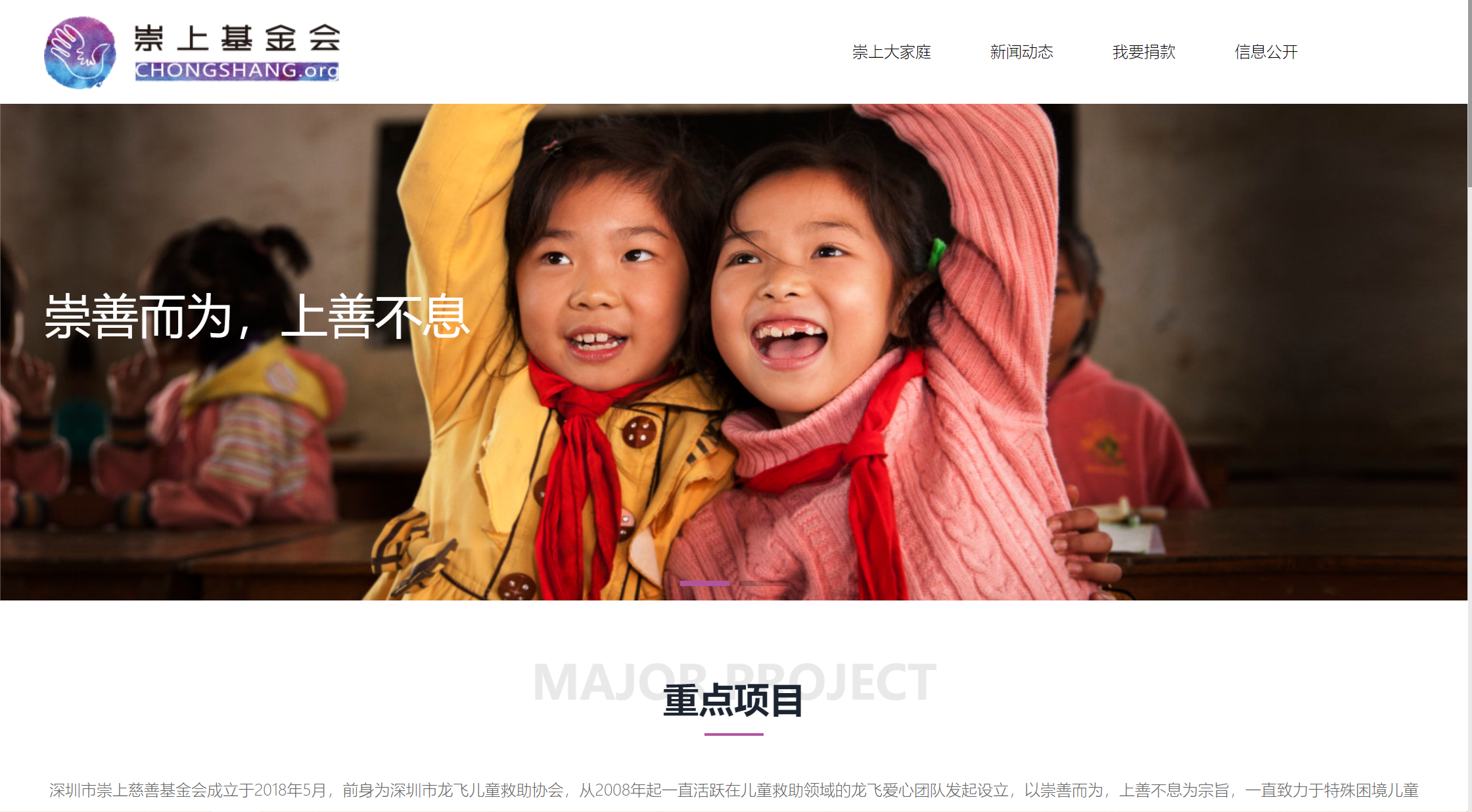 深圳市崇上慈善基金會(huì)成立于2018年5月,前身為深圳市龍飛兒童救助協(xié)會(huì),從2008年起一直活躍在兒童救助領(lǐng)域的龍飛愛(ài)心團(tuán)...